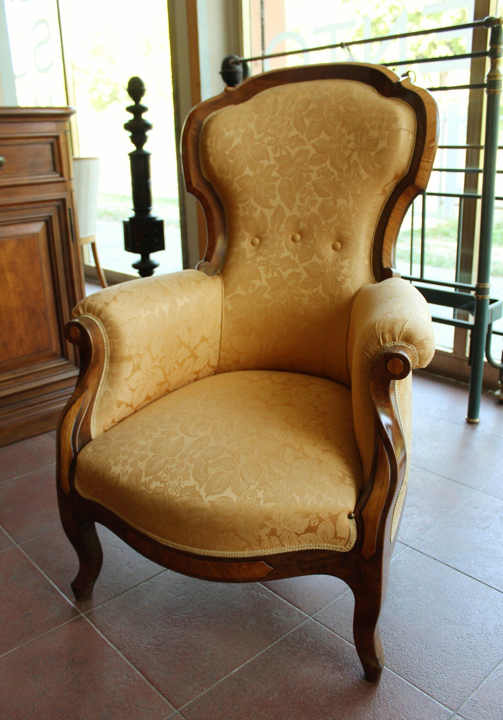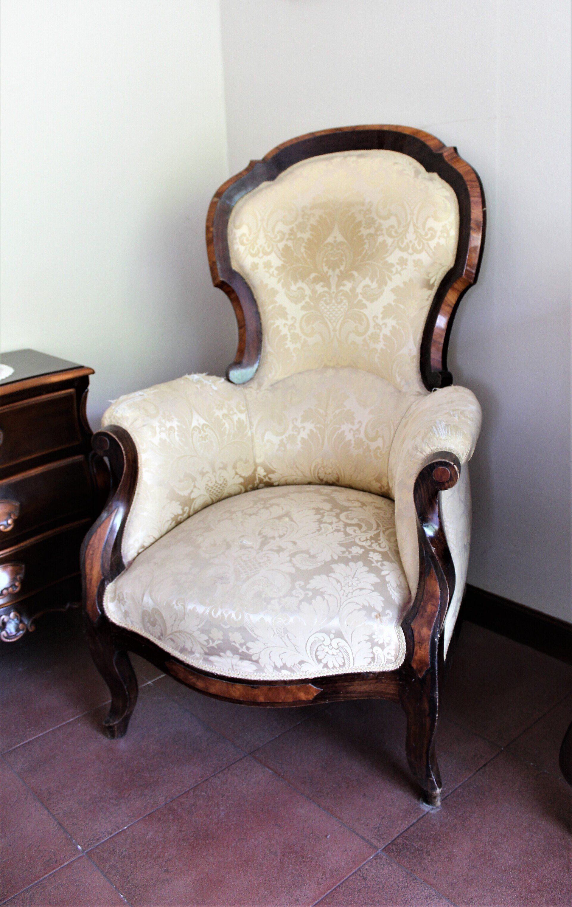 Poltrona genovese Luigi Filippo in noce e bois de rose originali (n.3 disponibili). Prezzo di vendita cadauna € 2.500, scontato € 900