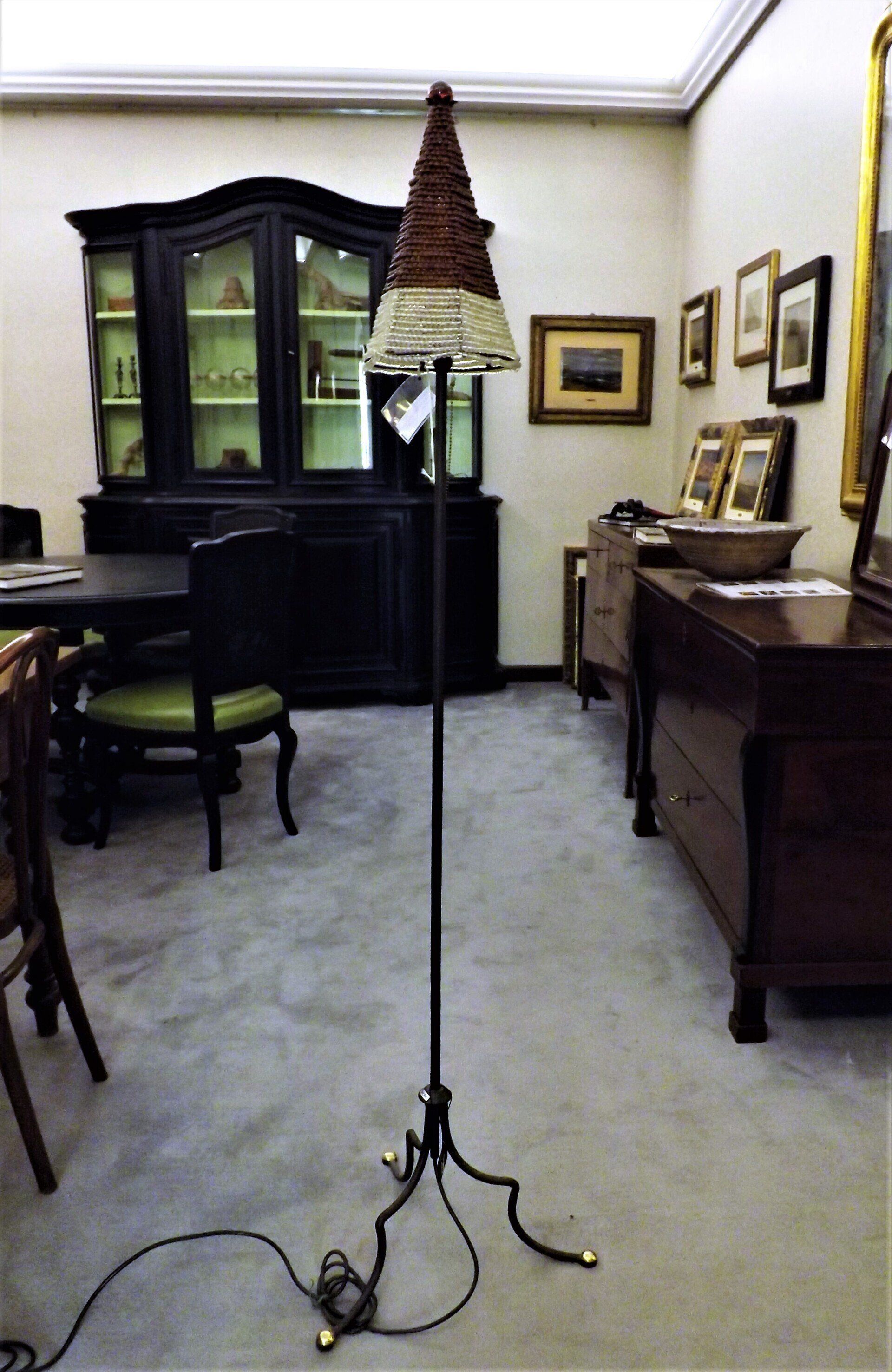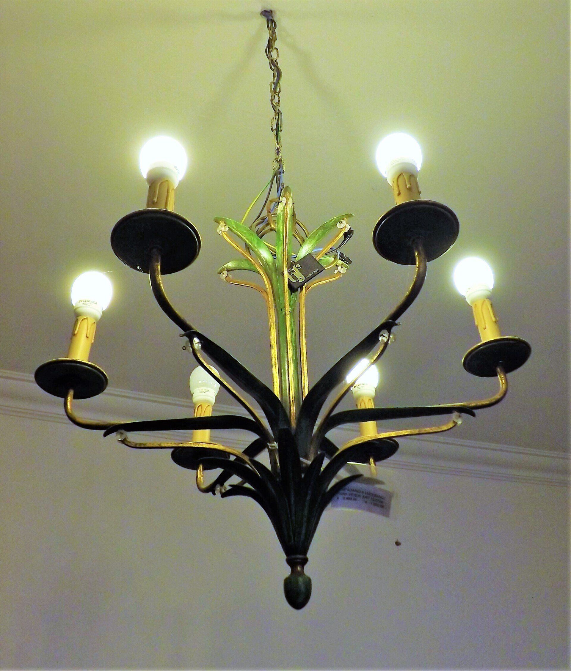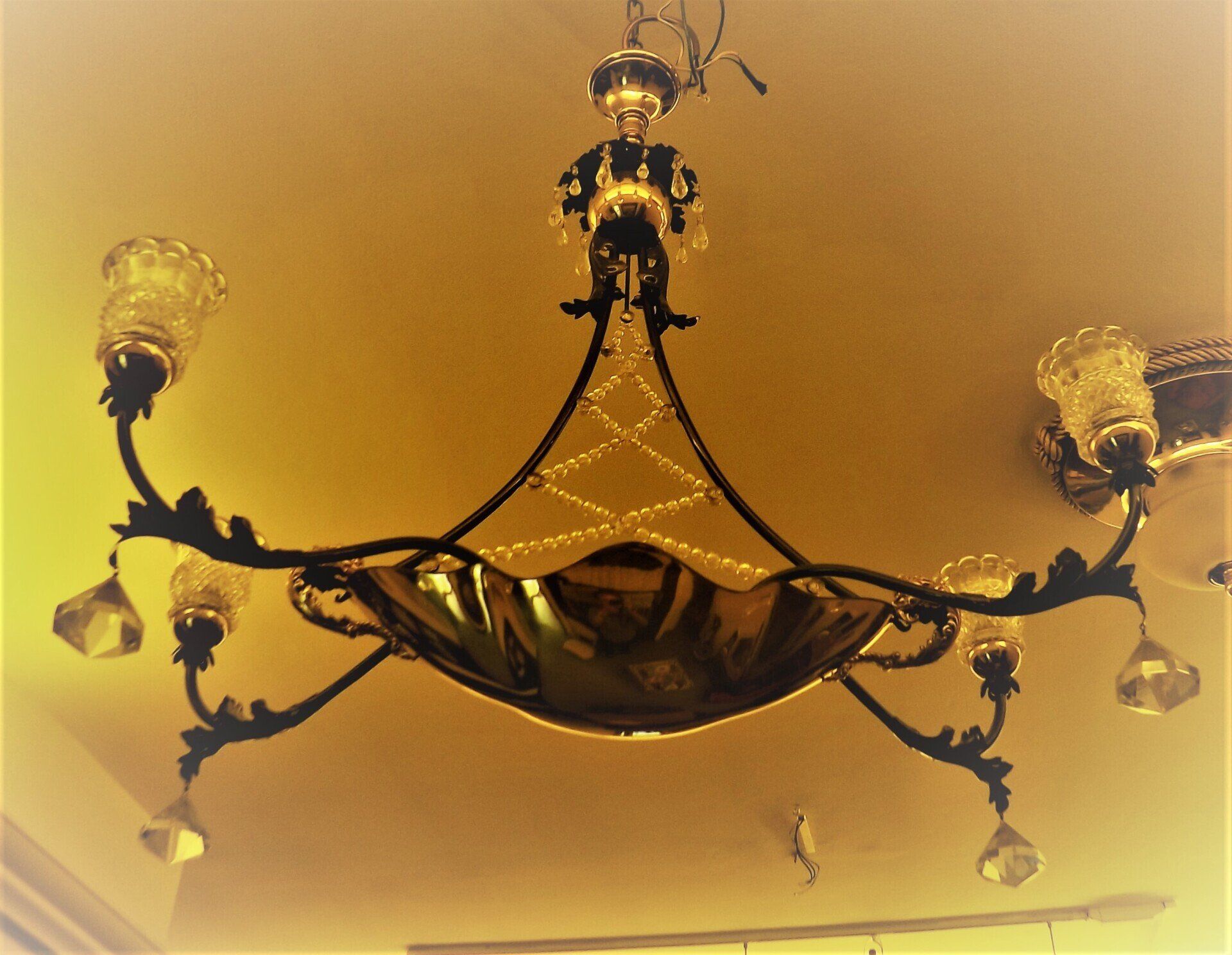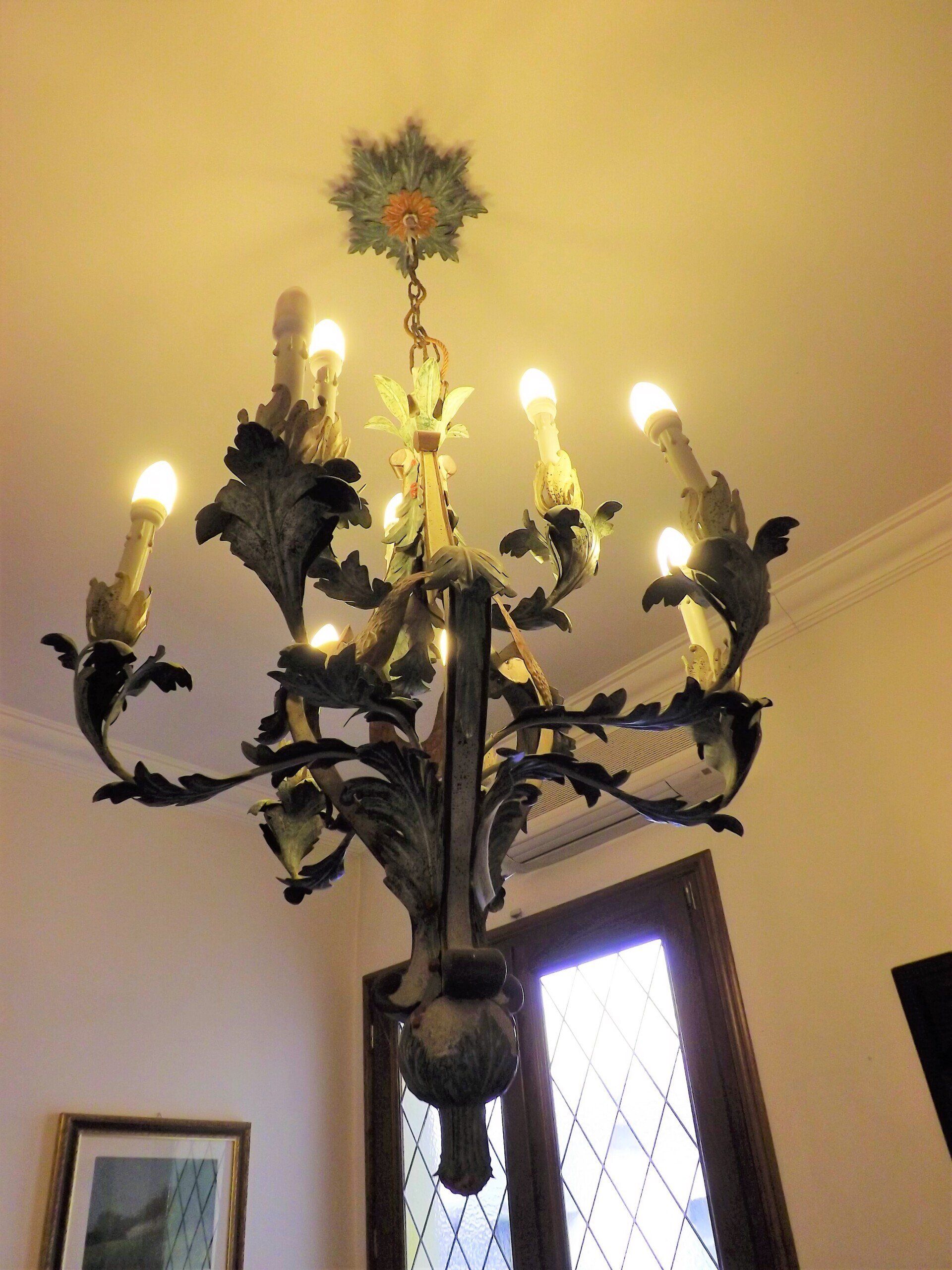 Lampadario ferro sbalzato a mano e decorato, nove luci, Banci