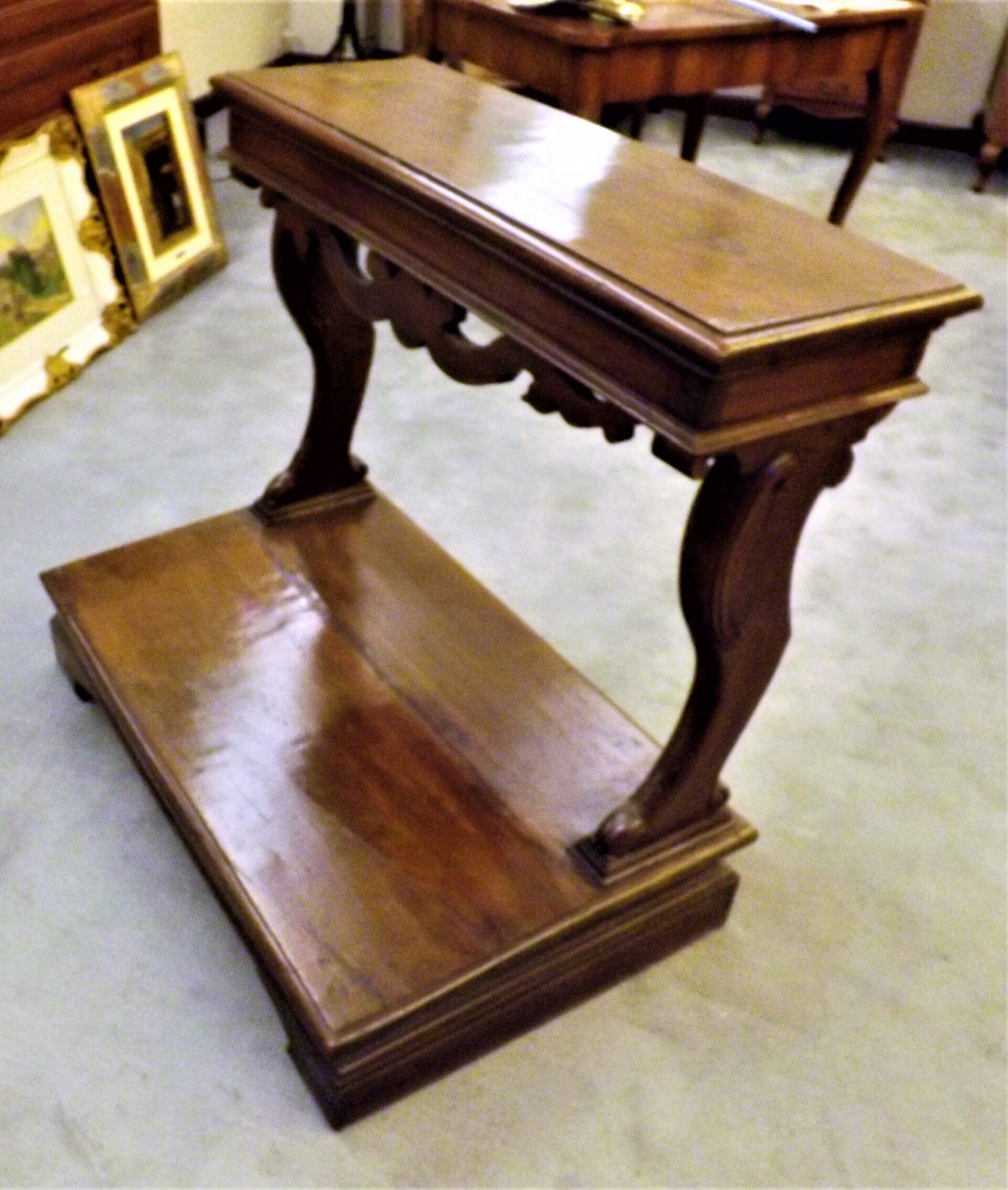 Consolle da muro Impero autentico in noce massiccio – dimensioni L133xP81xH77 cm. Necessita di restauro. Prezzo di vendita € 1.800, scontato € 600