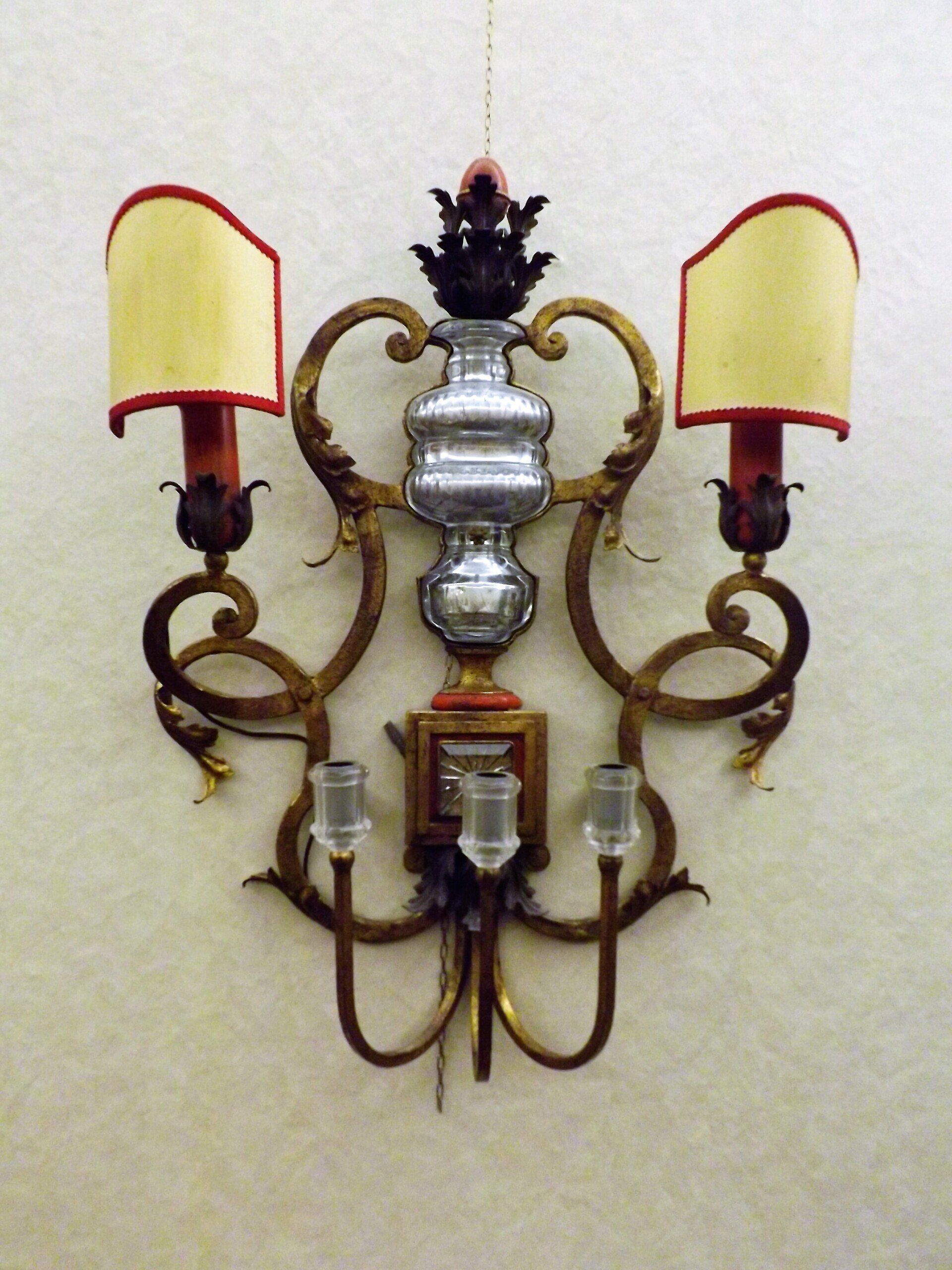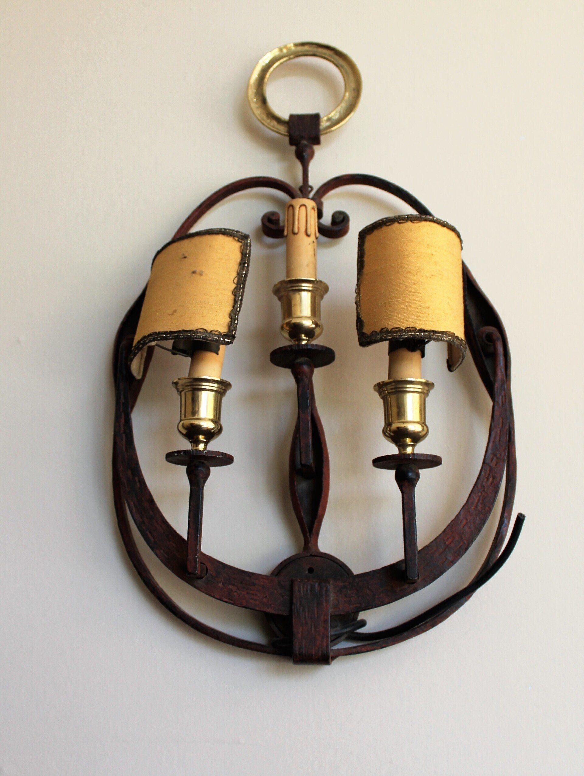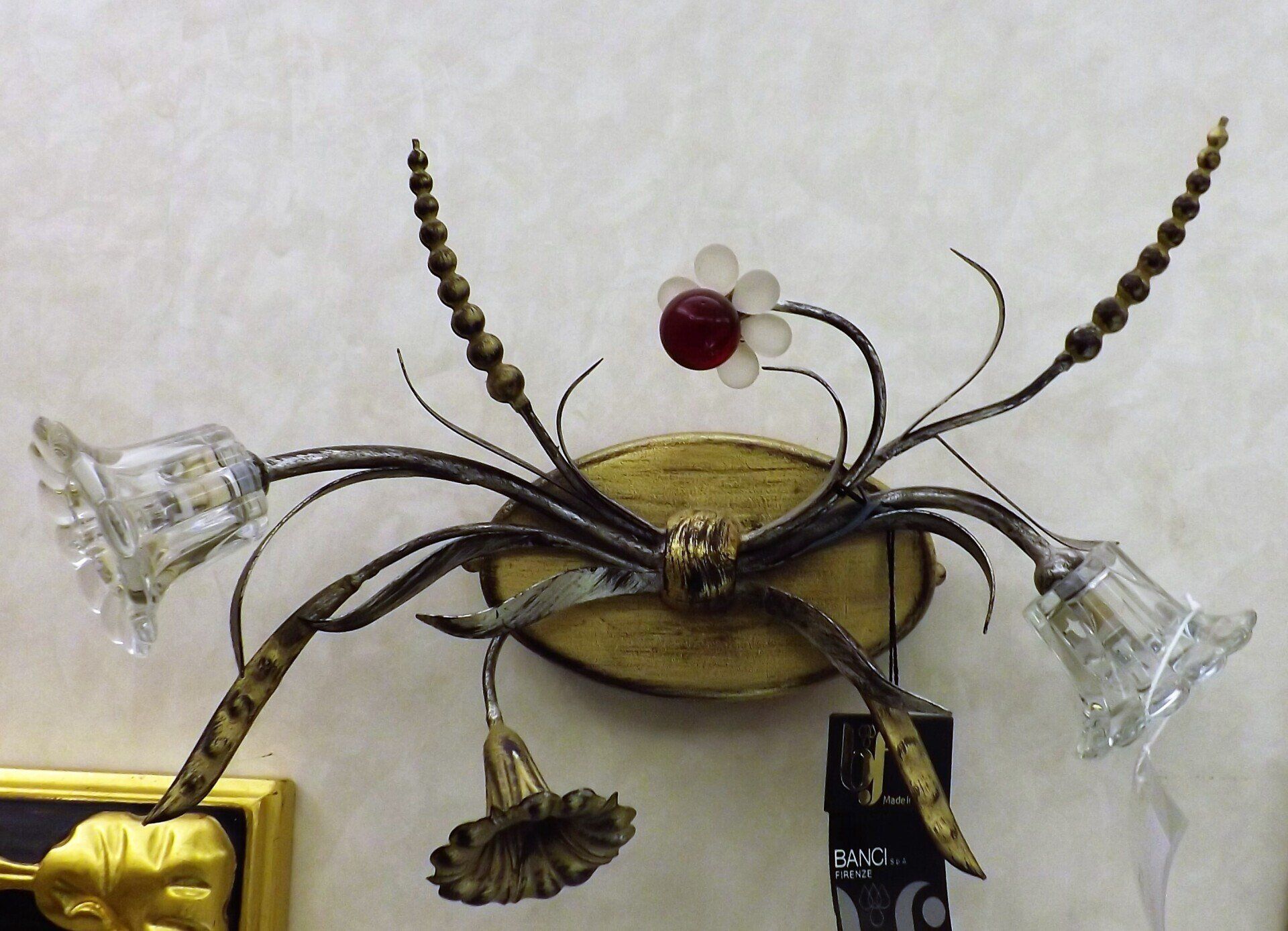 Plafoniera a tre luci in ferro sbalzato , Banci