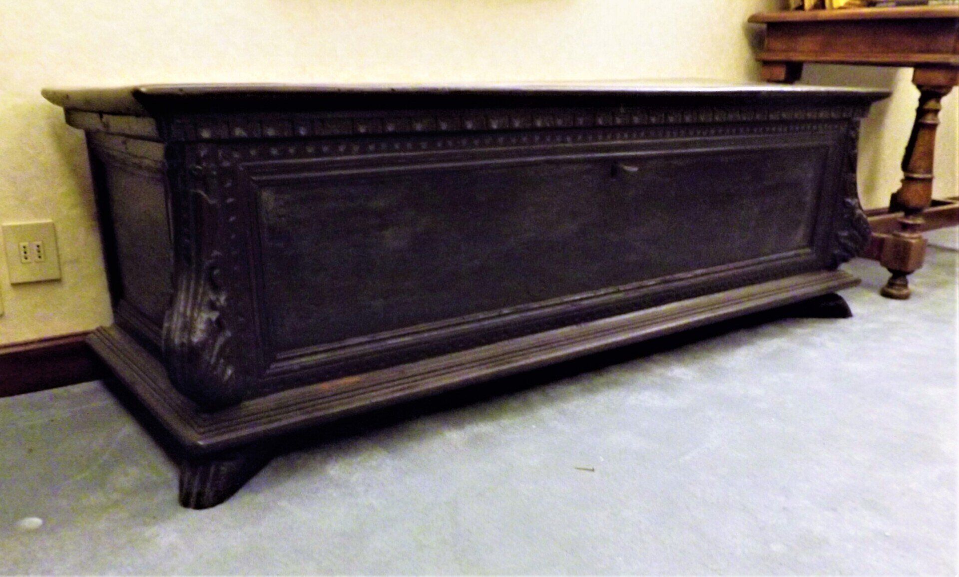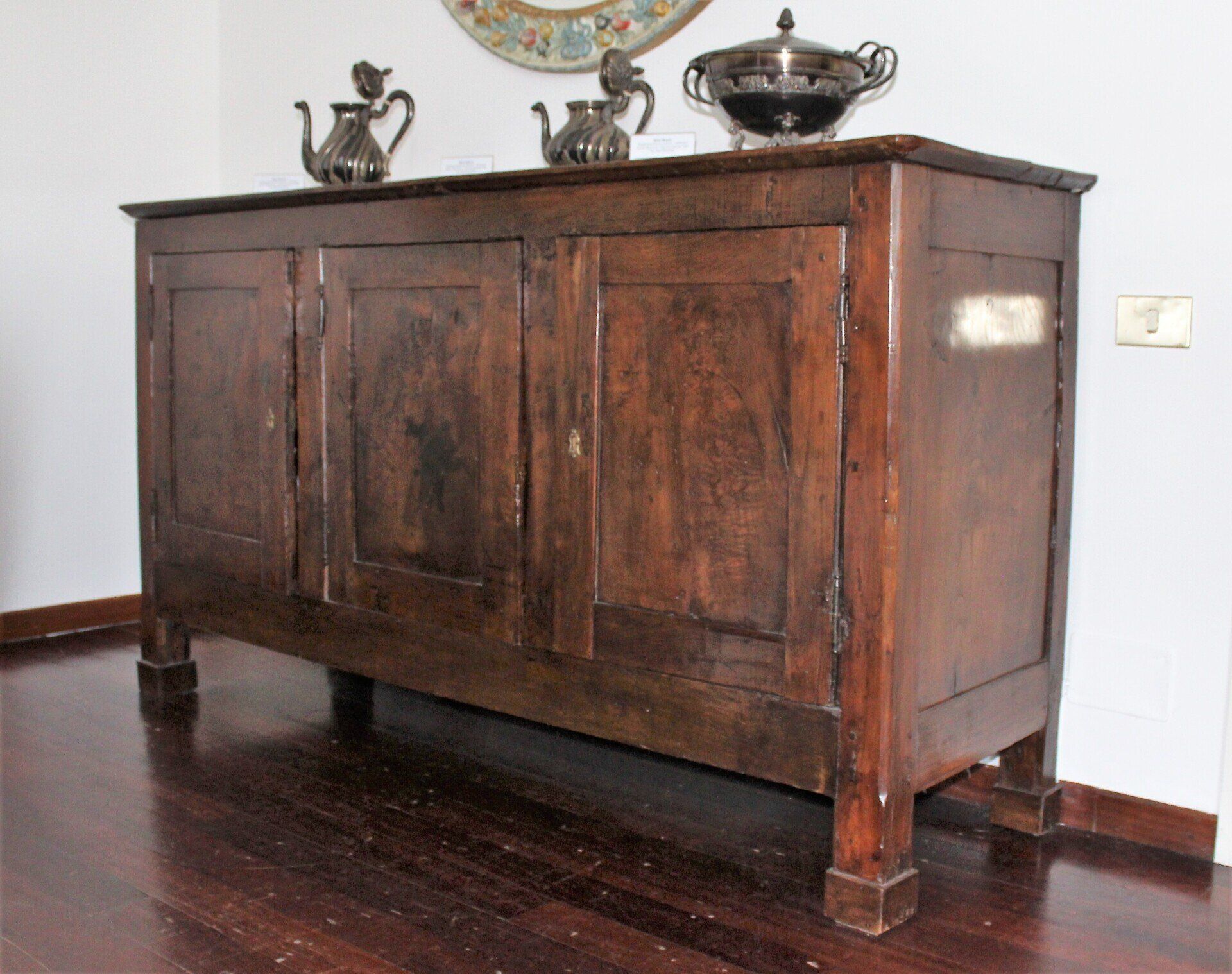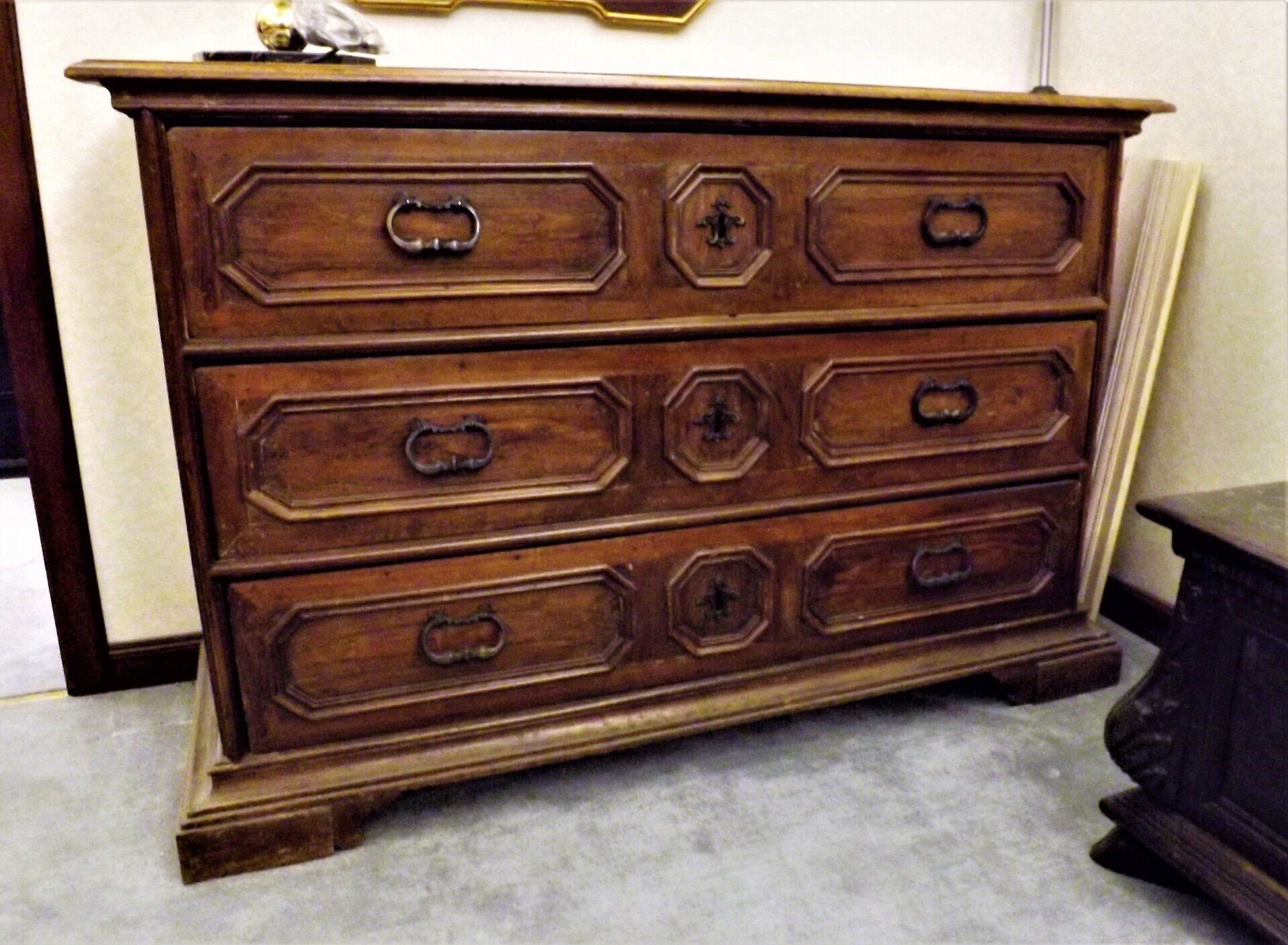 Cassettone Parmigiano 1600 autentico dimensioni L156xP59xH104 cm in legno di noce massello completo di maniglie e bocchette originali. Prezzo di vendita € 10.000, scontato € 4.500