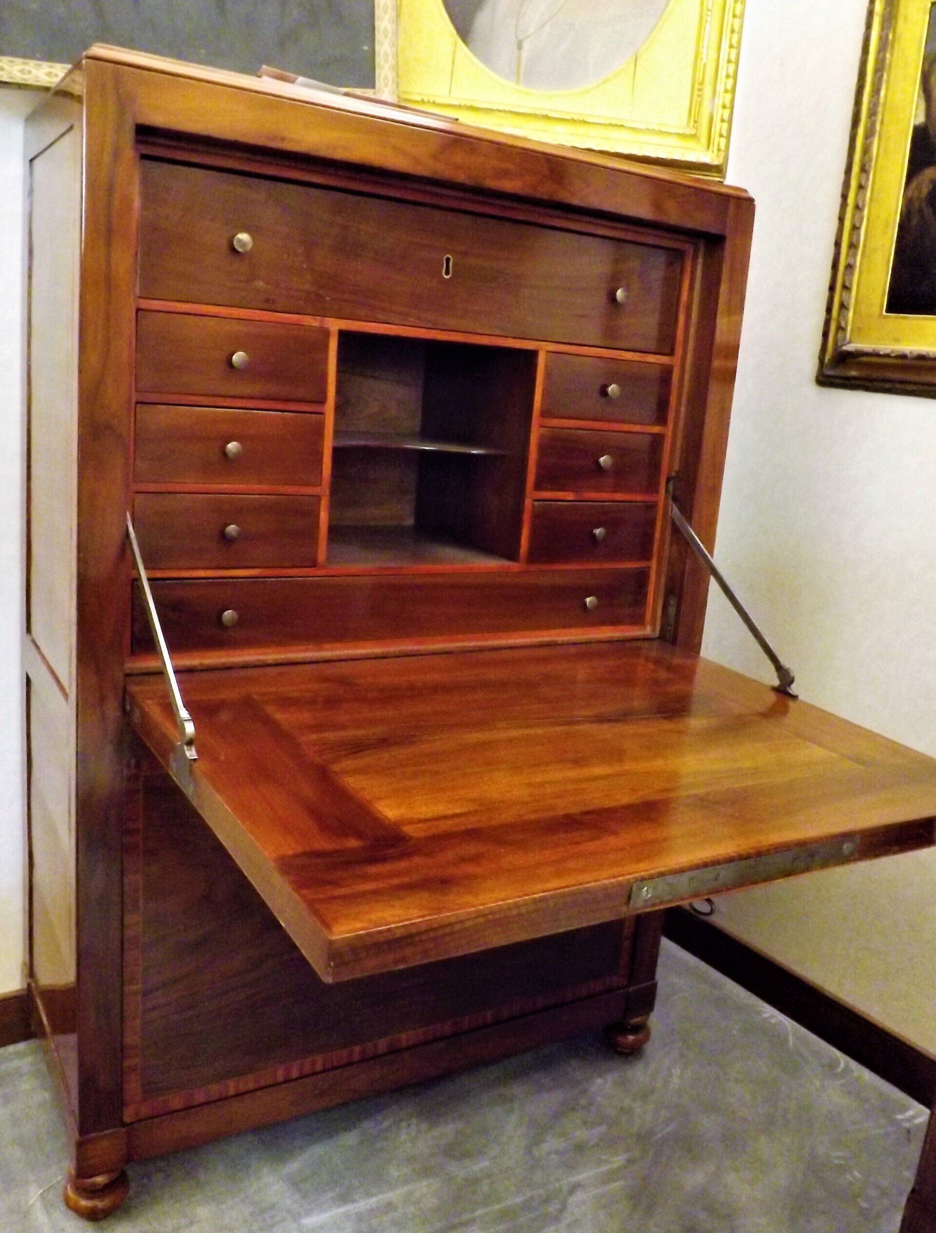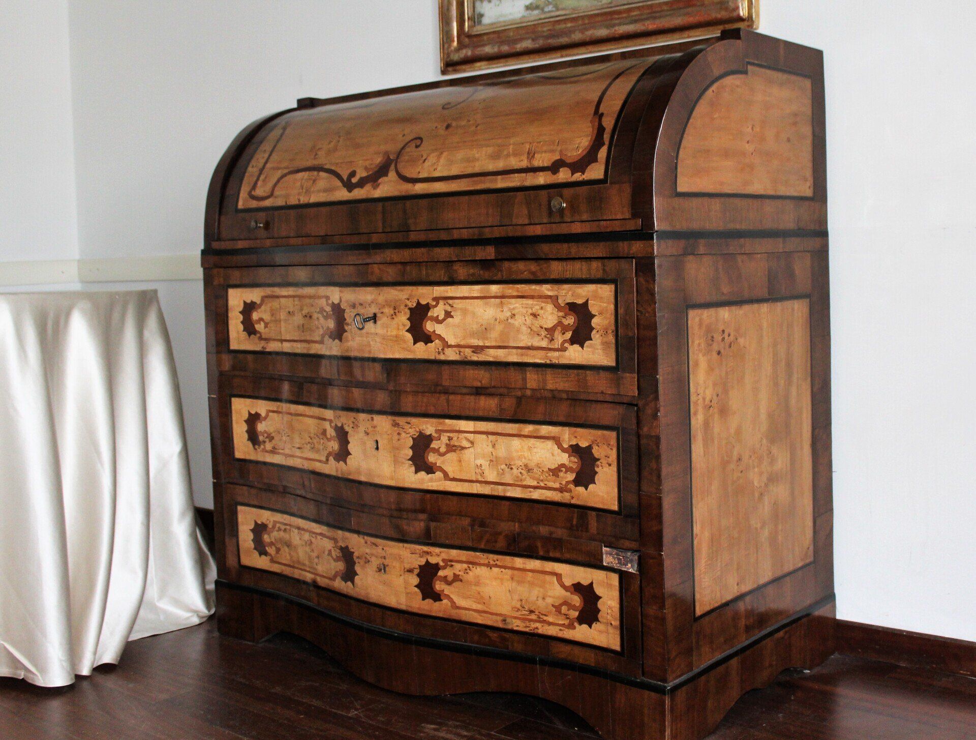 Il mobile è completamente autentico, nulla è stato rifatto. Ha una segreta sotto al piano. Necessita di lucidatura. Le maniglie sono state rimesse. Dimensioni Lunghezza 136 cm, Altezza 106 cm, Profondità 66 cm
