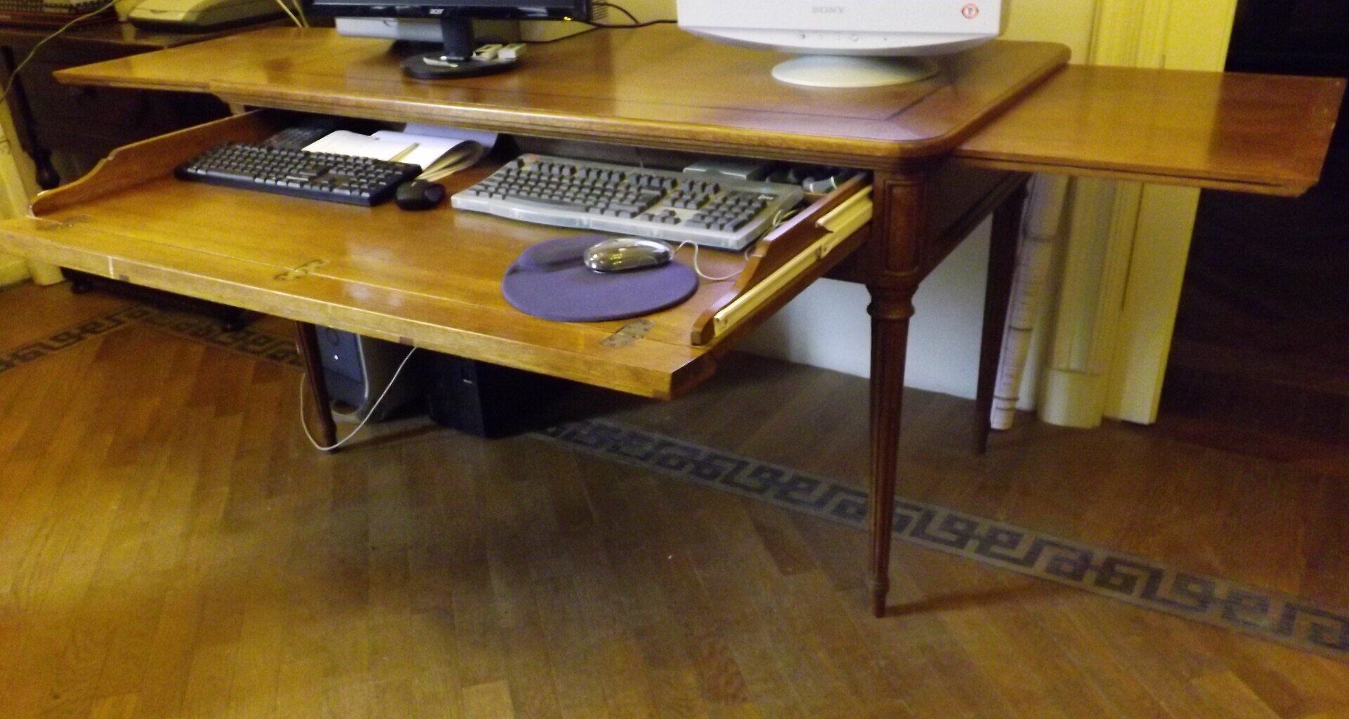 Scrittoio in noce e bois de rose, già restaurato, dimensioni Lunghezza 93,5 x Profondità 44,5 x altezza 144 cm. Profondità a scrittoio aperto 105,5 cm. Prezzo € 3.000,00 franco laboratorio. Prezzo di vendita € 5.500, scontato € 2.500