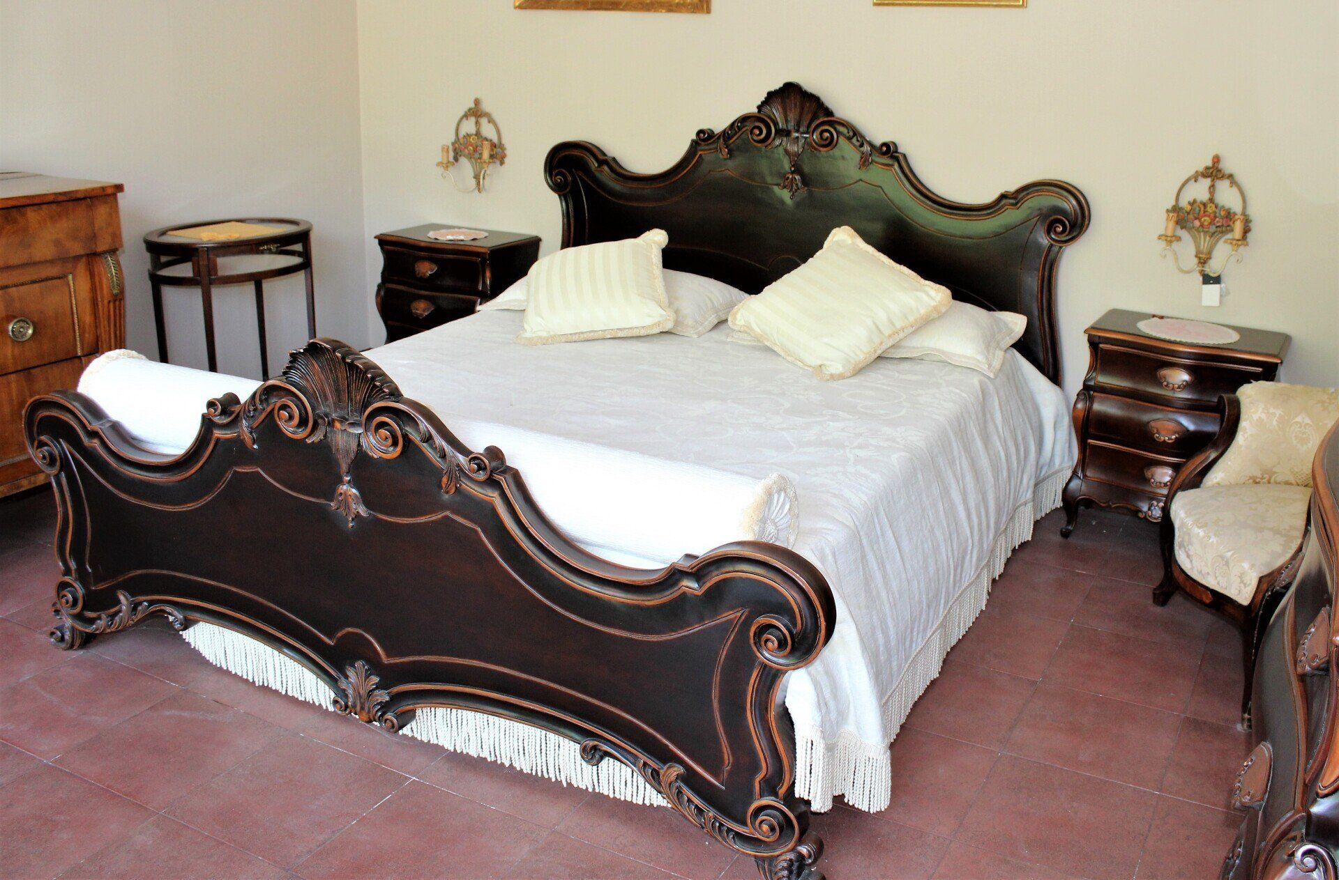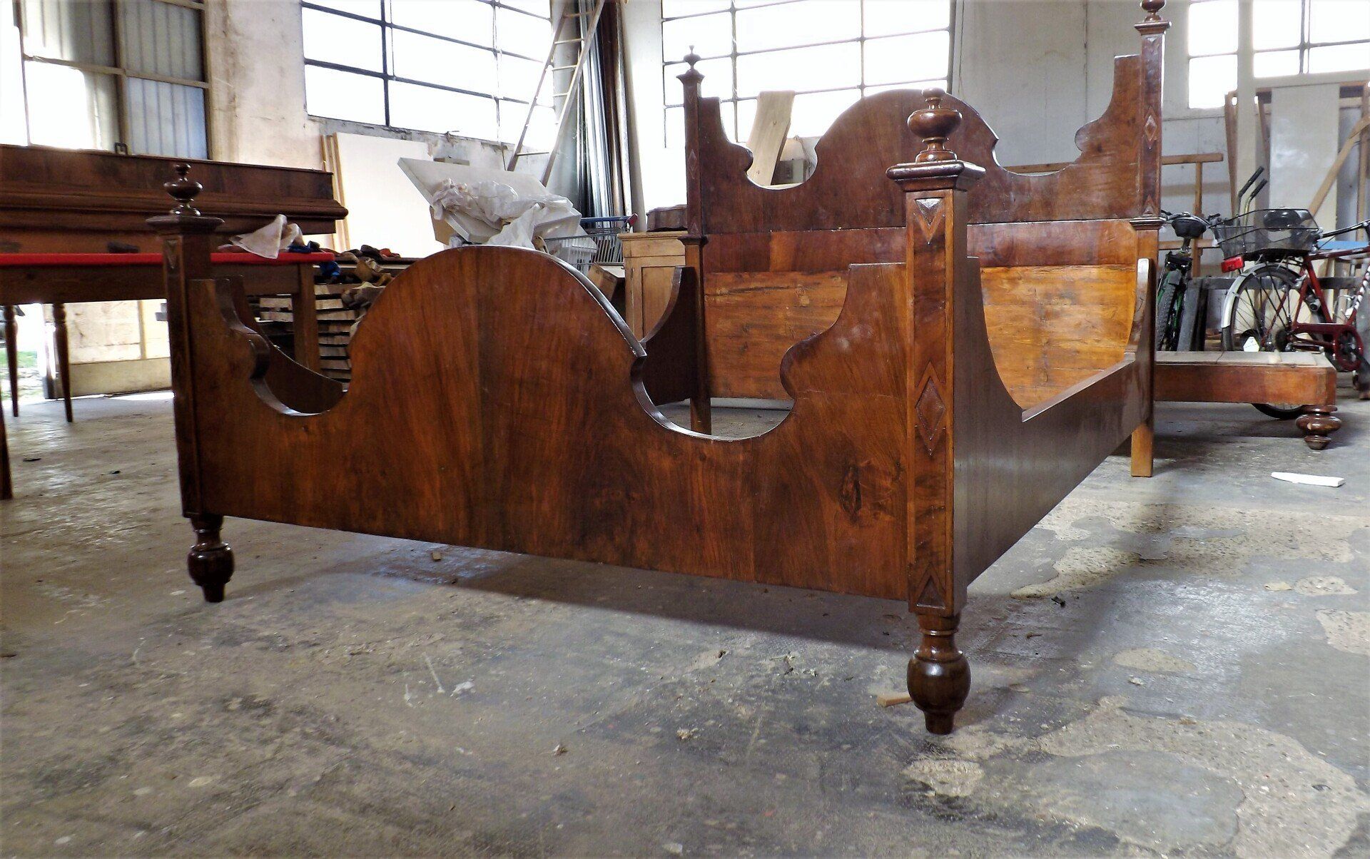 Letto completo Carlo decimo autentico in noce dimensioni 171 x 216 x H massima 150 cm.