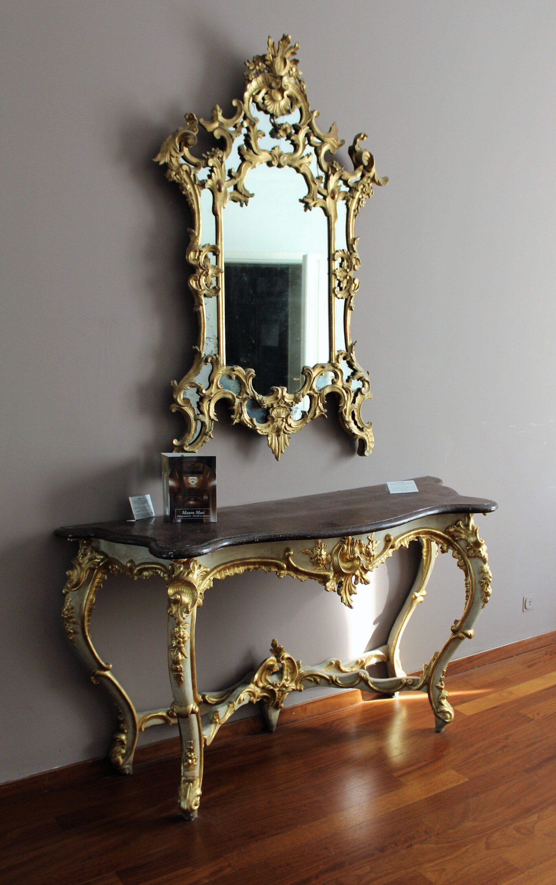 Consolle ‘700 in foglia oro e specchiera ‘700 in foglia oro