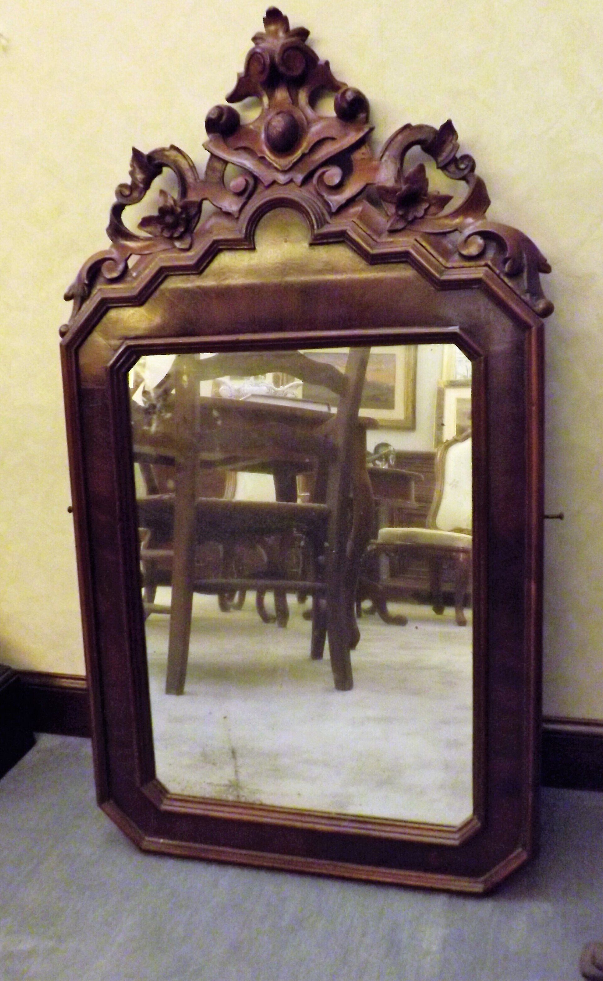 Specchiera ‘800 in noce intagliato, dimensioni 48x80 cm